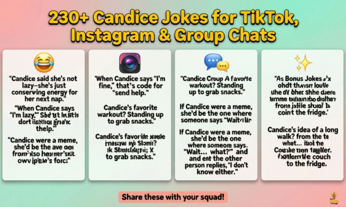 This post brings together 230+ Candice Jokes made for real moments. You’ll find short one-liners, viral setups, clean humor, and caption-ready puns that fit TikTok, Instagram, and group chats perfectly. Whether you want laughs with friends, content that boosts engagement, or jokes that feel fresh in 2026, this list has you covered. Every joke is easy to read, easy to share, and built to keep conversations fun.